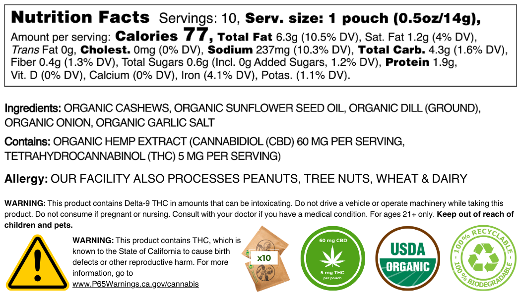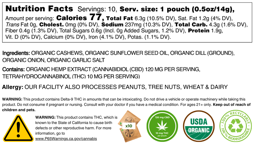 Each hemp jute drawstring bag or child-resistant box carries 10 serving pouches, and every tier has a different cannabinoid potency level. Choose your tier in the drop-down box below!