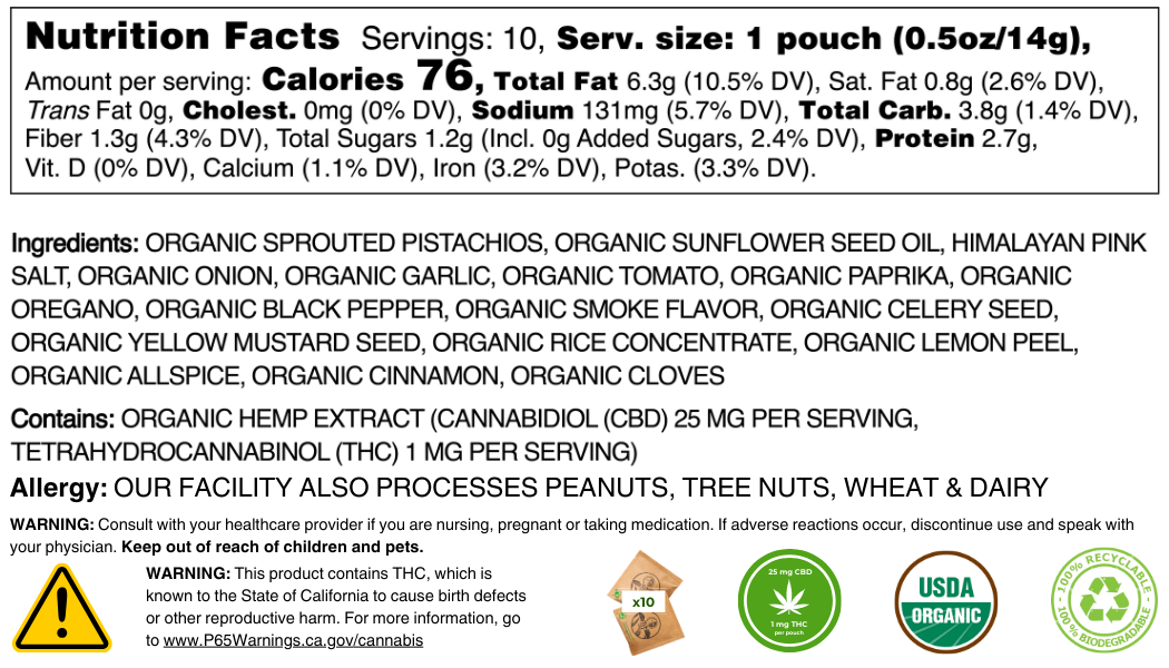Our joyfully seasoned pistachios, peanuts, cashews and sunflower seeds are certified organic! You can be sure you're eating the highest quality products uncontaminated by GMOs, pesticides, heavy metals, molds, and other impurities.